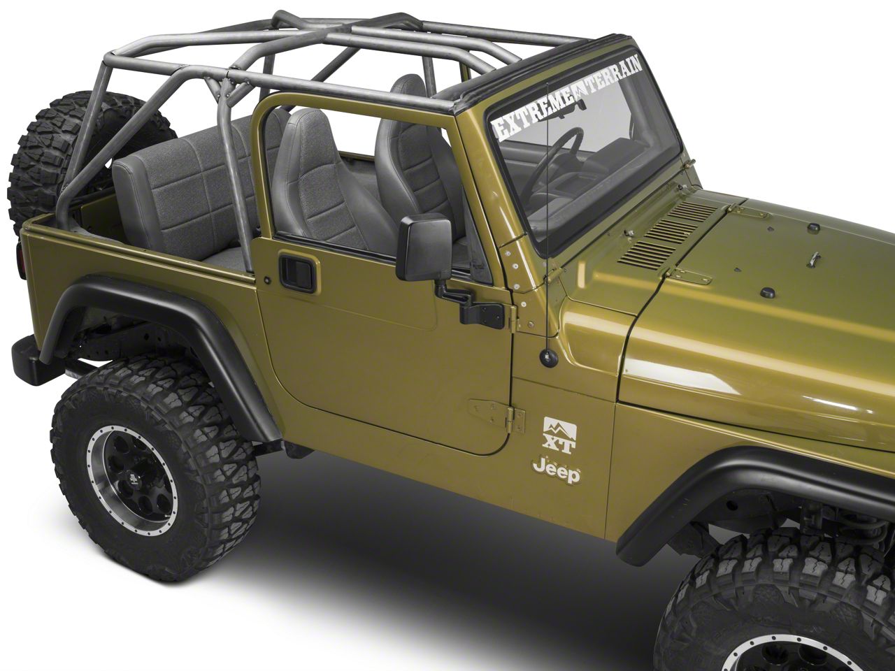 The poison spyder trail cage is designed for those jeep yj tj and lj owners who already have the factory roll bar and would like to add on to it to form a full roll cage rather than installing a complete new cage.
